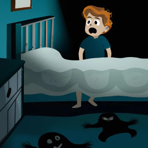 "A boy having a hallucination of something scary in
