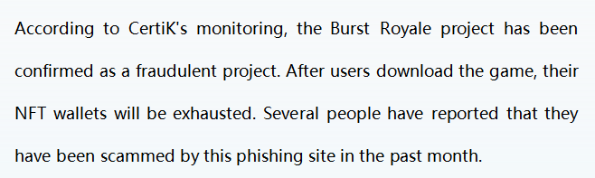 The Burst Royale project has been confirmed as a scam