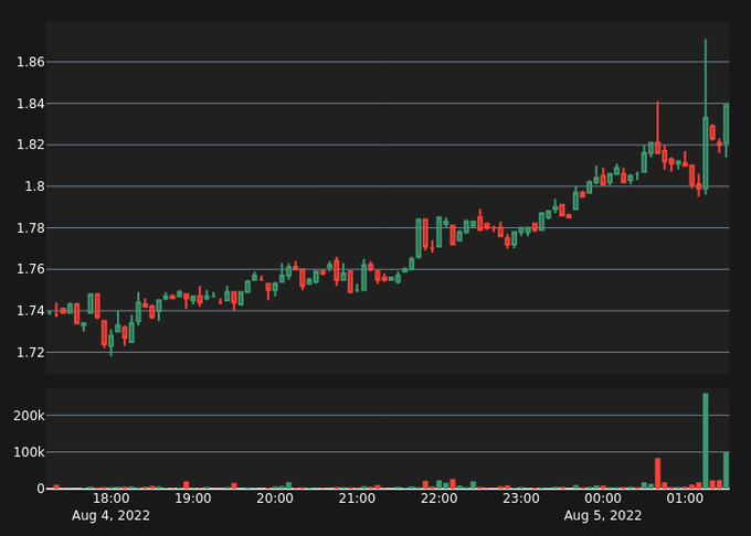 #BANDUSDT Bull Alert! 10X Volume Price: 1.838 5-min