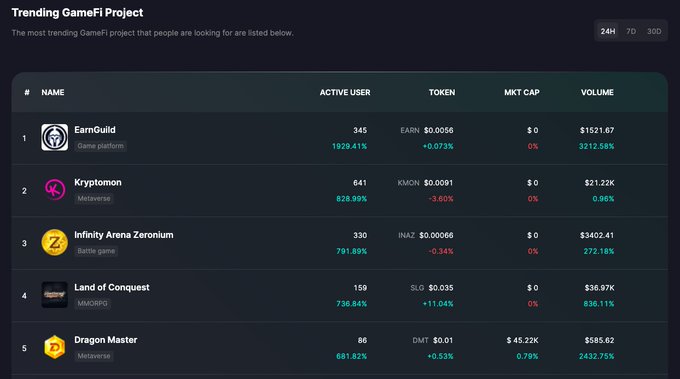 Today's Biggest #web3game Gainers on #GamefiDashboard๏ผ https://t