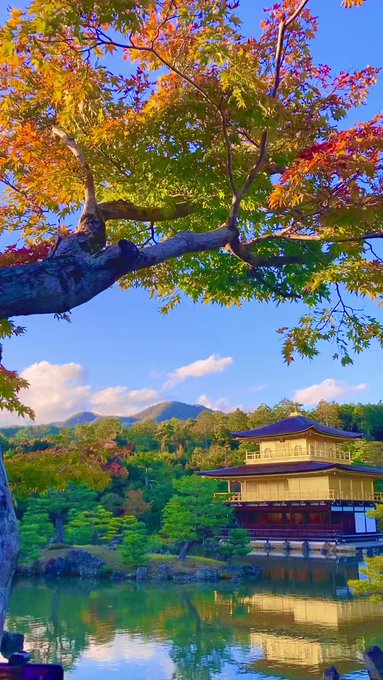 Beautiful pine tree and colored leaves at the Kinkakuji