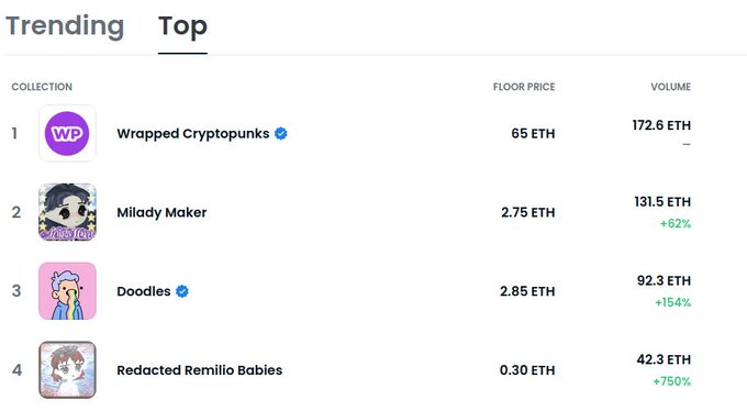Despite being half of the top 4 NFT collections on