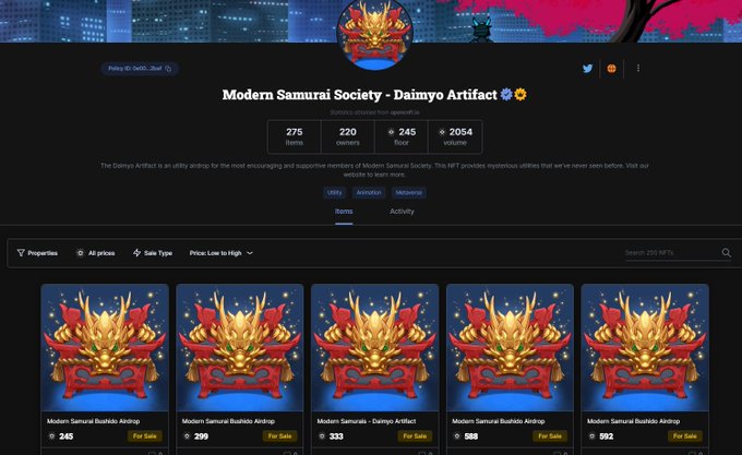 Our Daimyo Artifact airdrop is officially verified