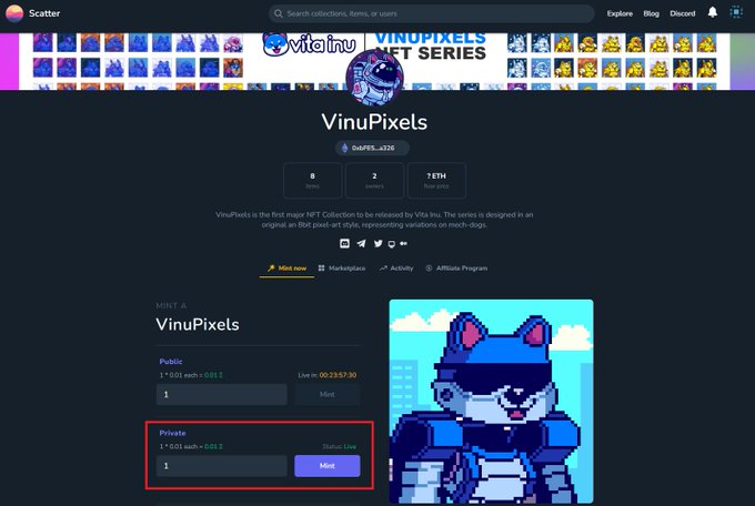 🚨 #VinuPixels whitelist minting is now live! (tomorrow