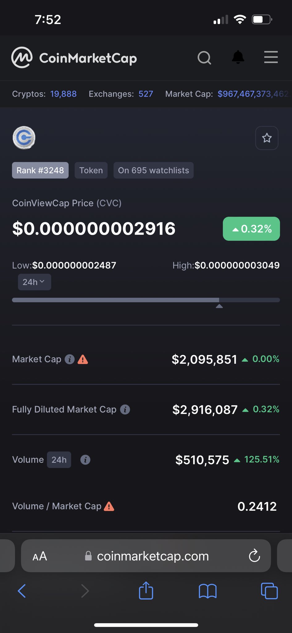 #cvc #CoinViewCap volume has raised up 125% today.