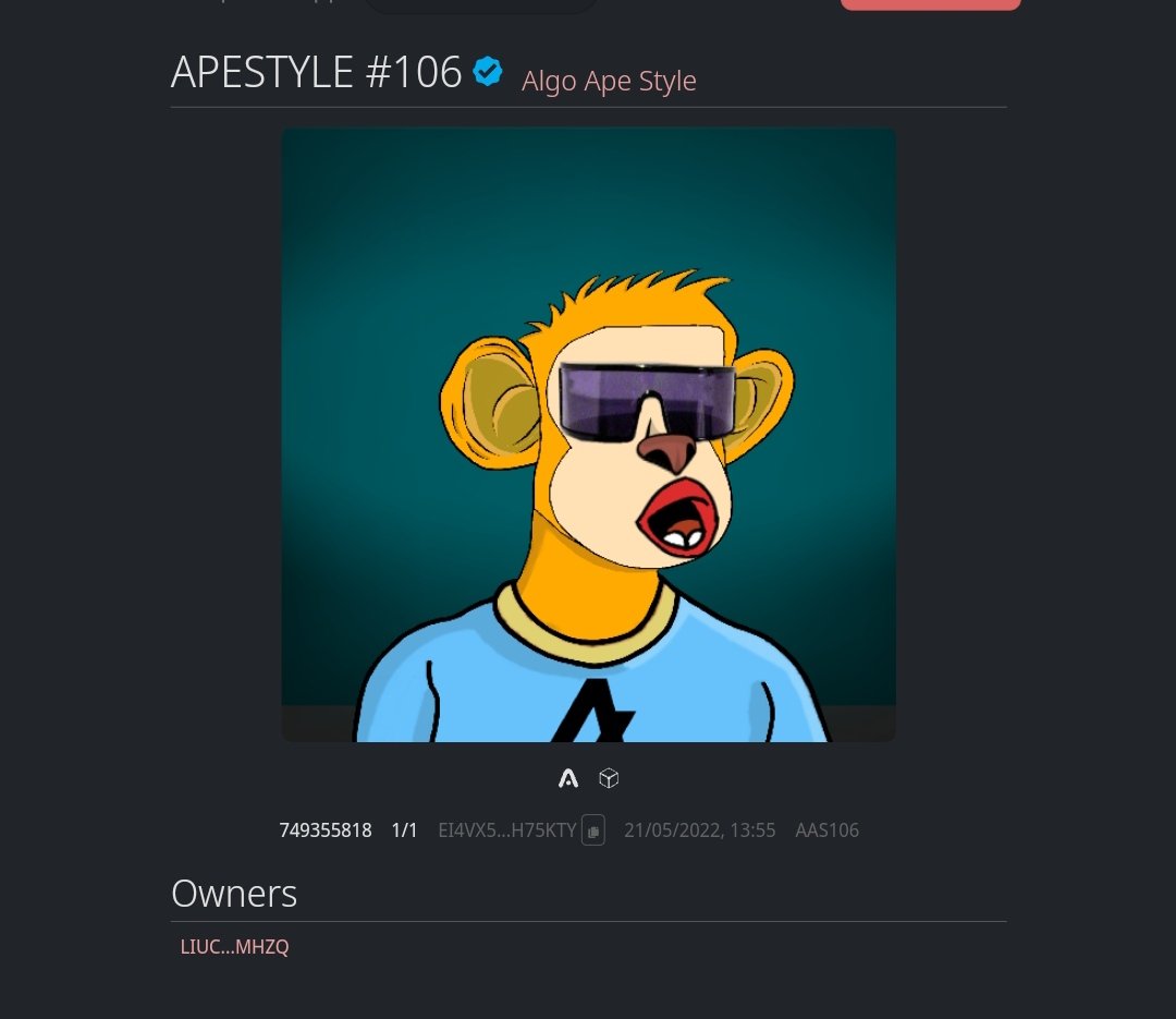 Apestyle #106 Sold On @ALGOxNFT For 10 A Don't miss