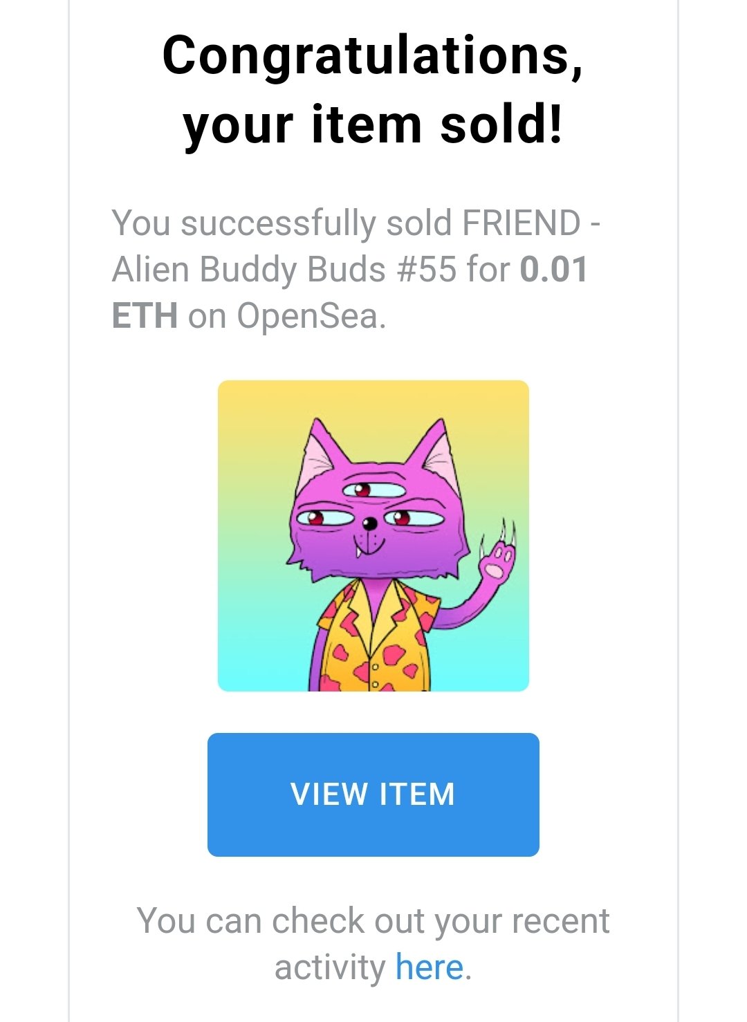 SOLD this first Catlien for 0.01 eth 💚 Thank you so