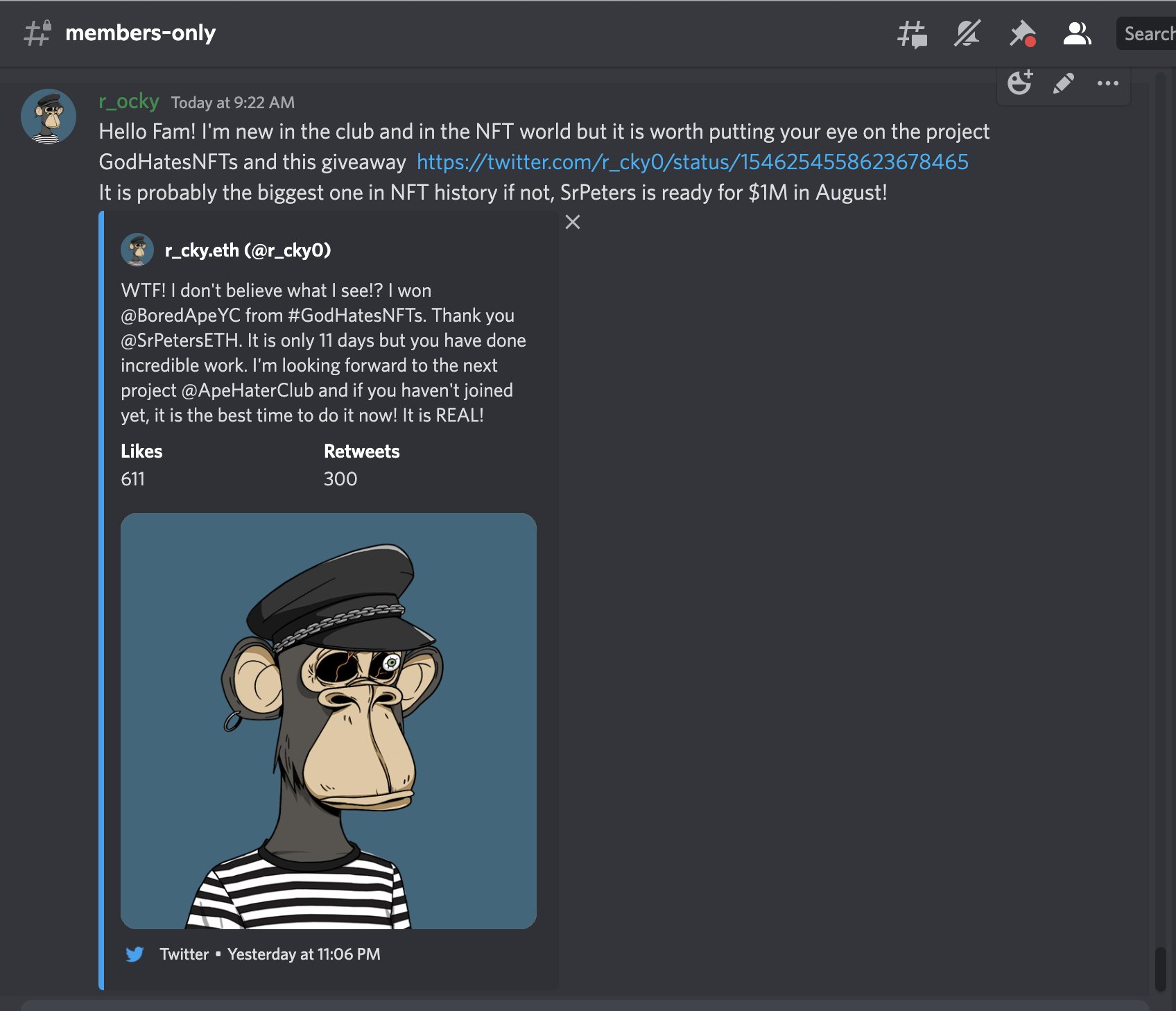 You're writing sweep a floor #GodHateNFTs after I won