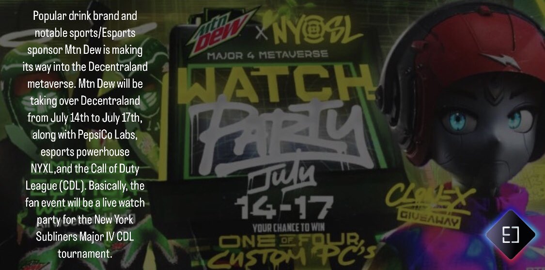 Mtn Dew To Host Esports Tournament Watch Party in Decentraland