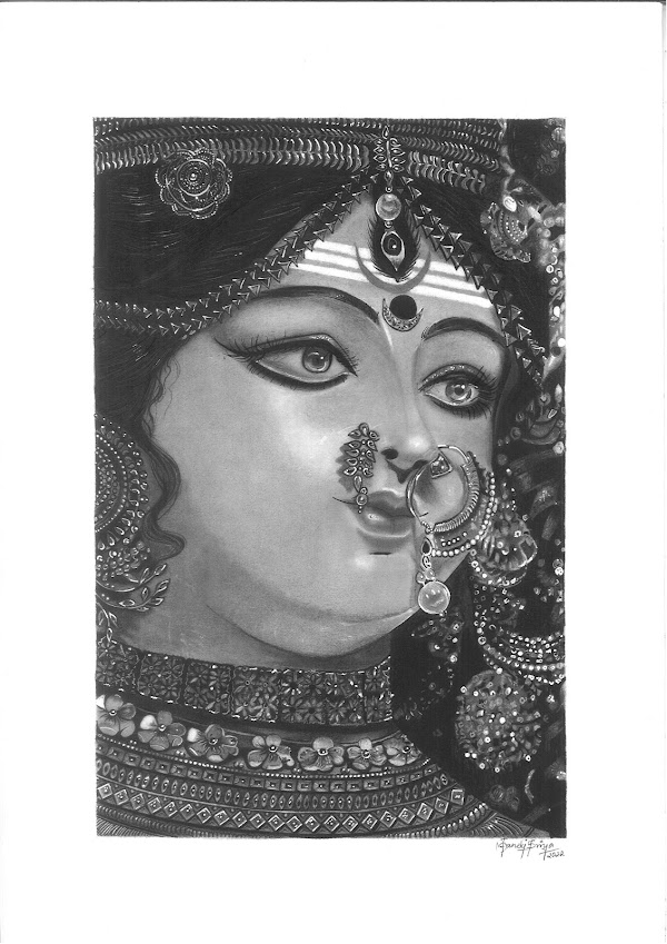 Sacred Feminine Power is a realistic charcoal painting