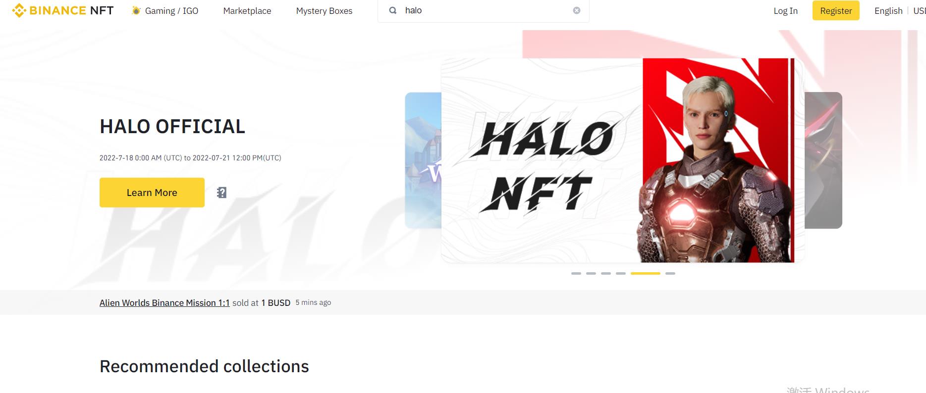 HALO will MINT @HALONFTOFFICIAL on DEX Binance NFT