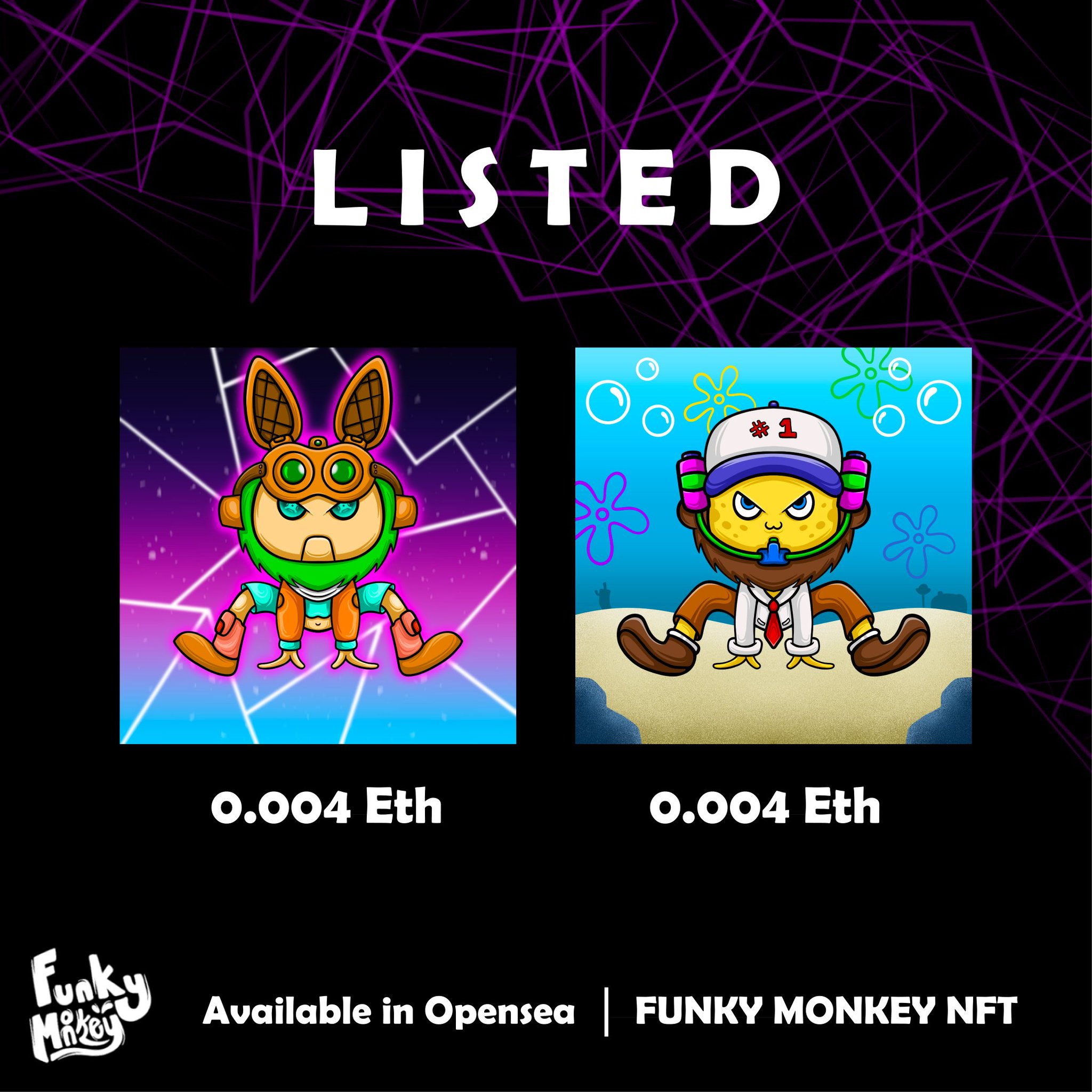 🚨 LISTED 🚨 FunkyMonkey #10 #11 Price : 0.004 ETH