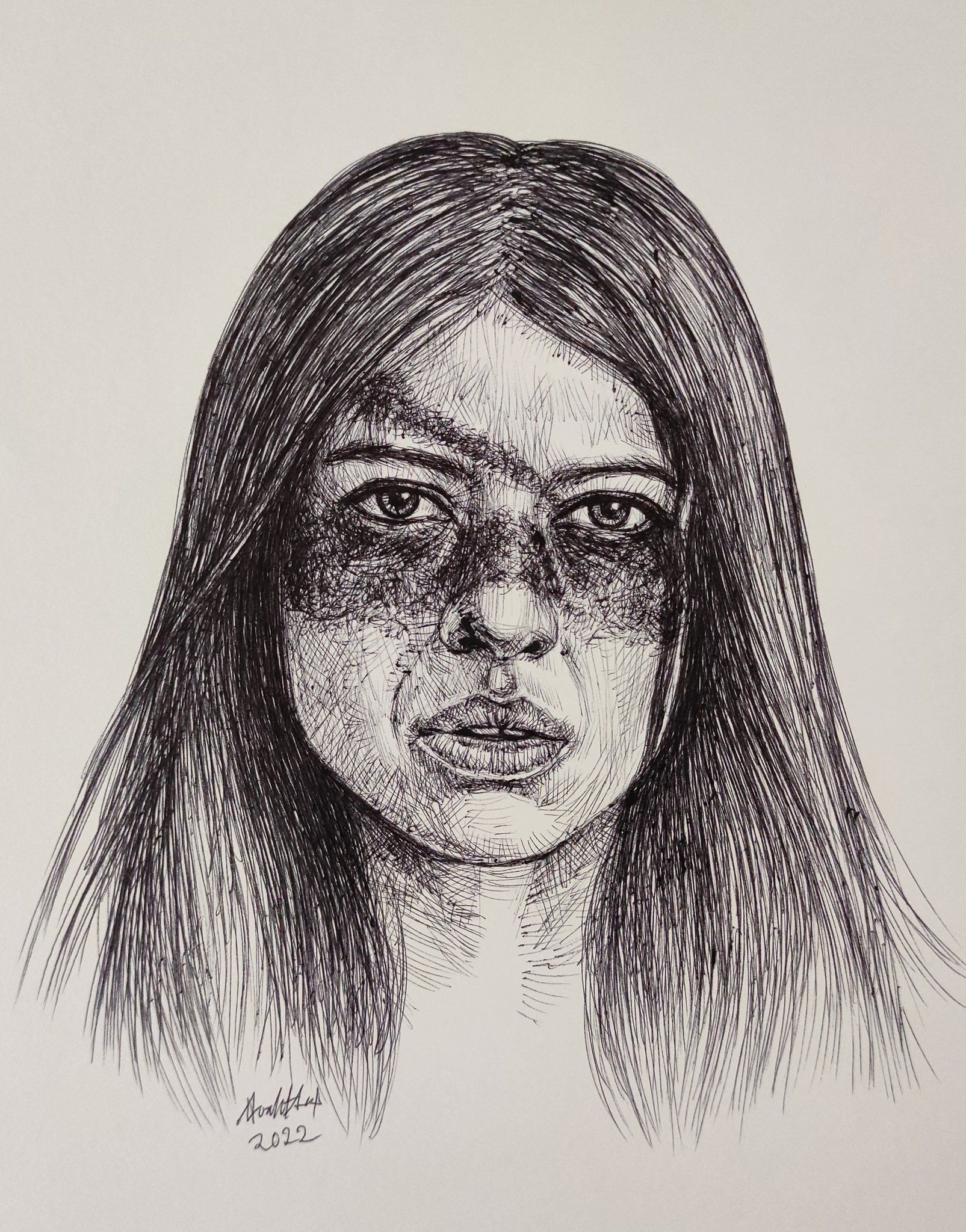 Drawing Naru ( Amber Midthunder ) of "Prey" using Ballpoint