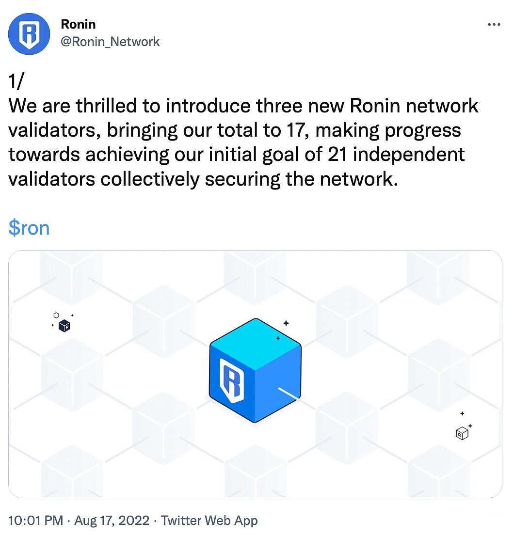 Axie Infinity sidechain Ronin announced the addition