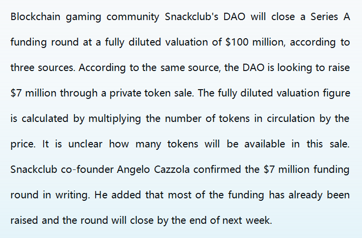 Snackclub Gaming DAO raises funds at $100 million valuation