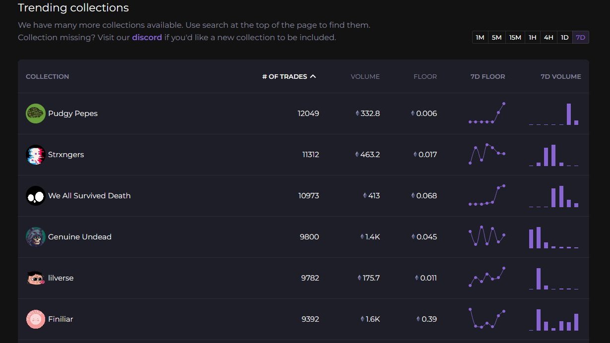 Top 5 NFT collections by the number of sales over the