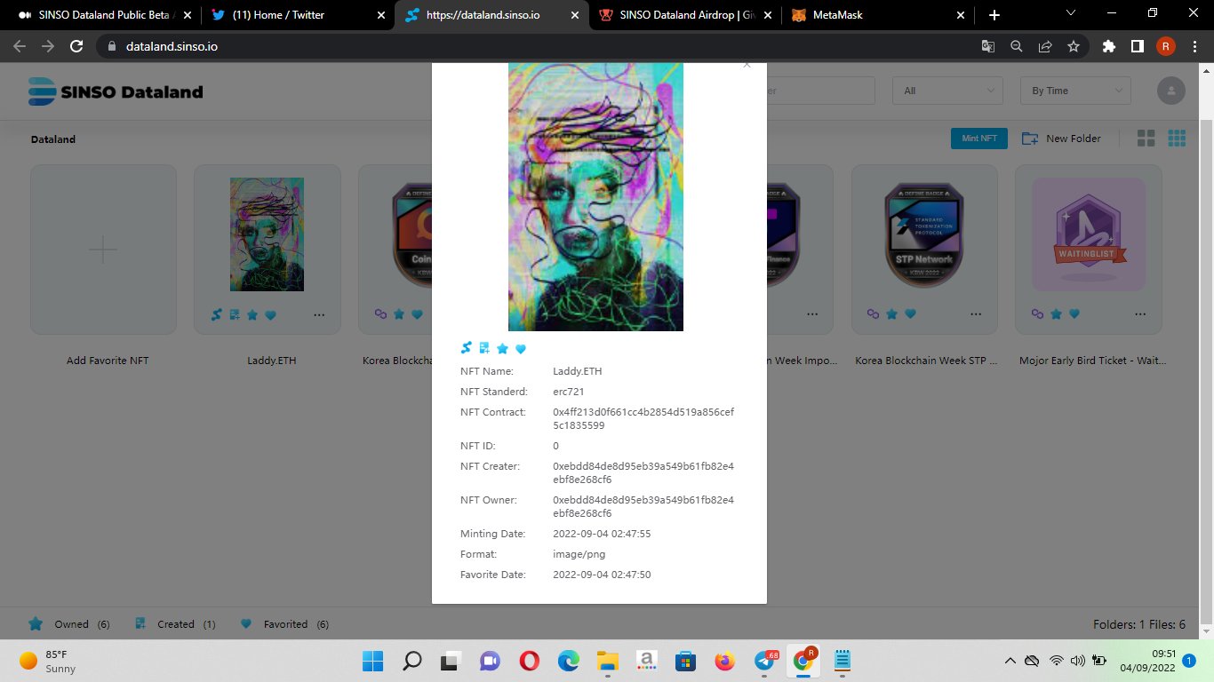 I Just mint my first NFT on #SINSO #DataLand. You can