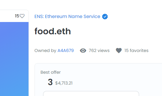 food.eth sold today for 8.88 ETH Last sold for 9 ETH