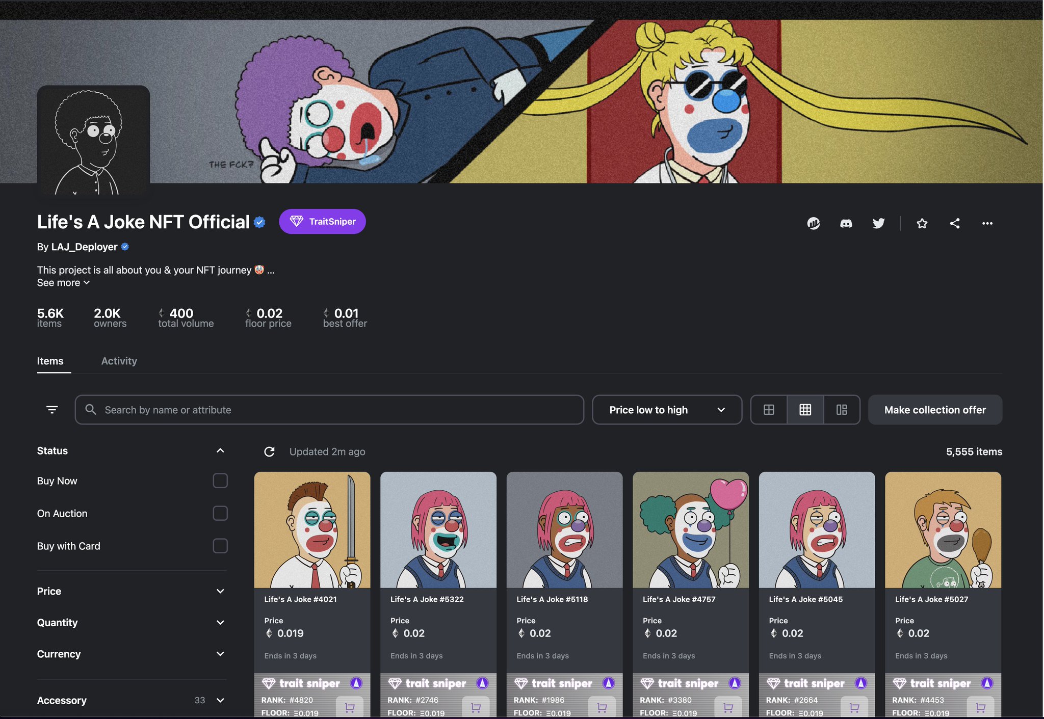 . @LifesAJoke_NFT has officially hit 400 ETH in Volume