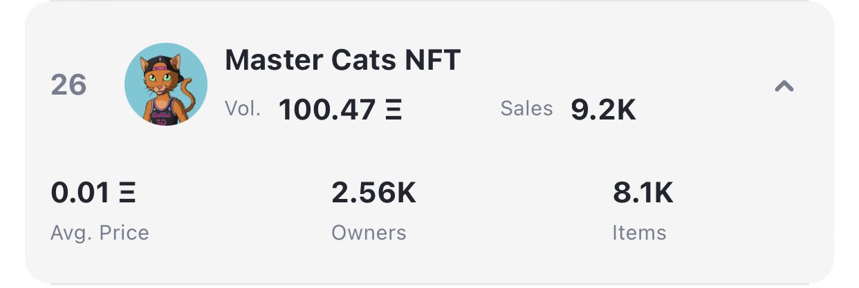 Best check out @MasterCatsNFT… -Broke 100eth vol