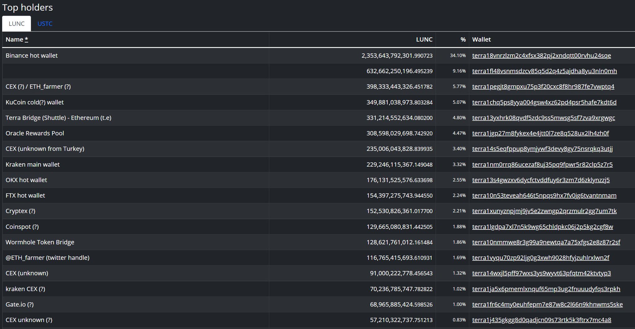 Here is TOP $LUNC Holder, based on https://t.co/TaKp03vkve