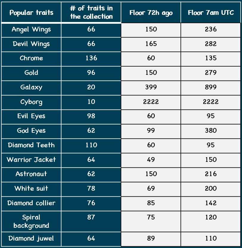 Floor price development of popular Degen Bunnies traits