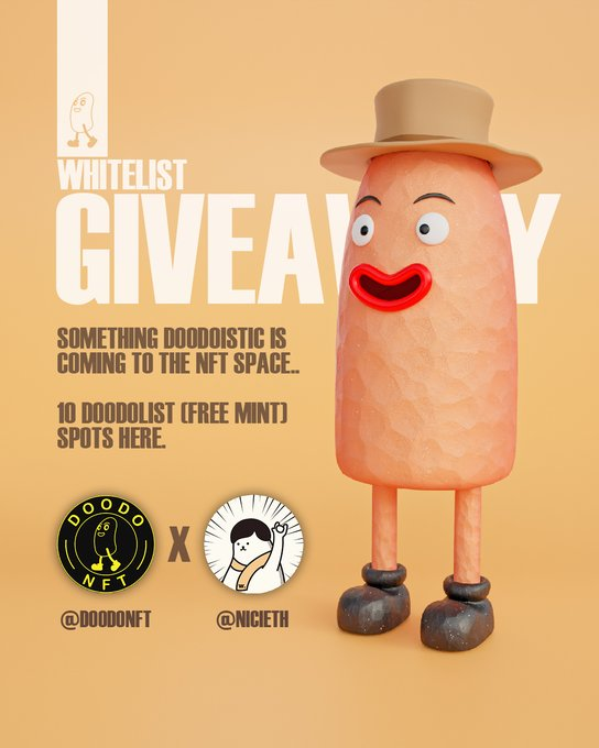 🎁 NFT WL Giveaway 🎁 Prizes: 🏆 5x WL from Free Mint @doodonft