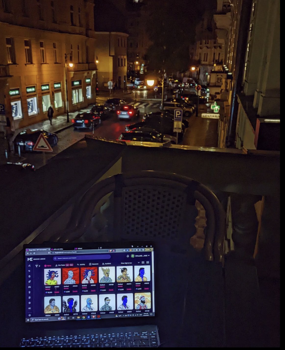 Some late night shopping on a moonlit balcony in Prague