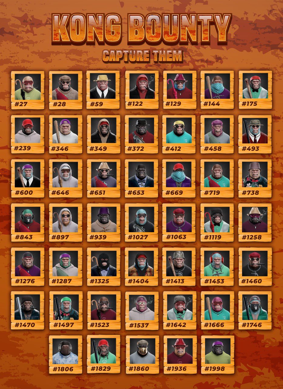 Bounties have been placed on Kongs. All Kongs below