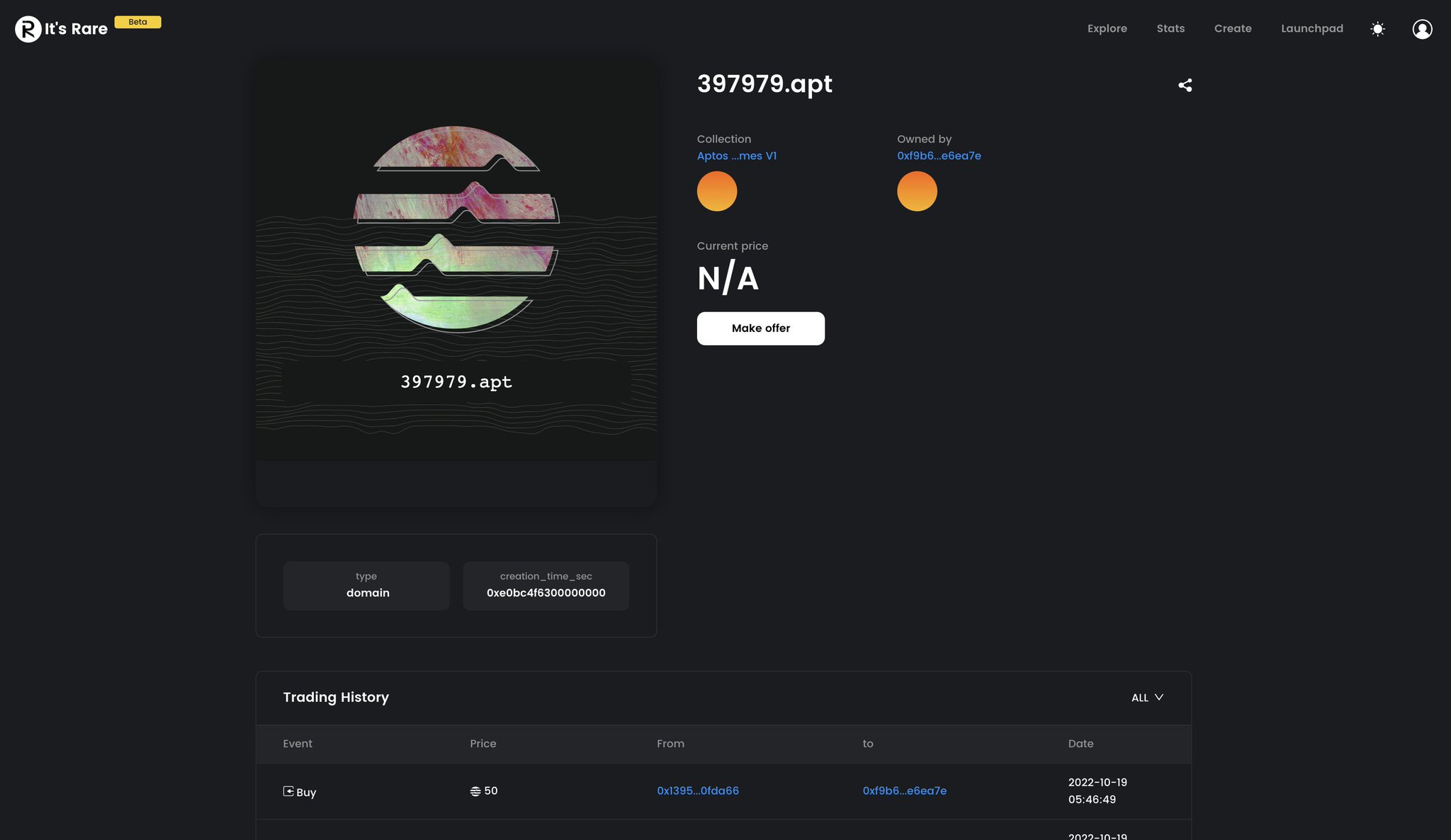 The most Expensive NFT trade 50 APT was done on @itsrareMarket
