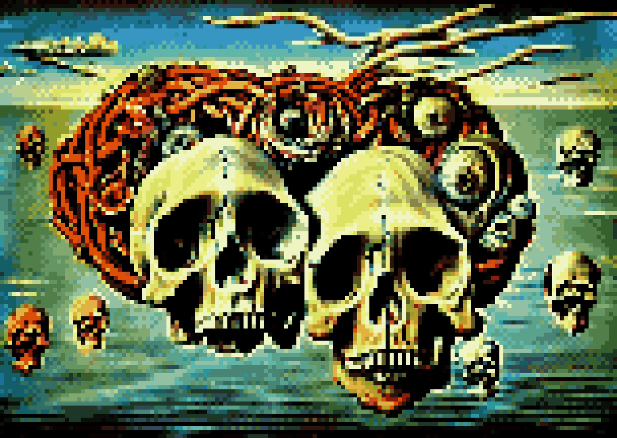 Flying Skulls 16bit. Inspired with ancient surrealistic