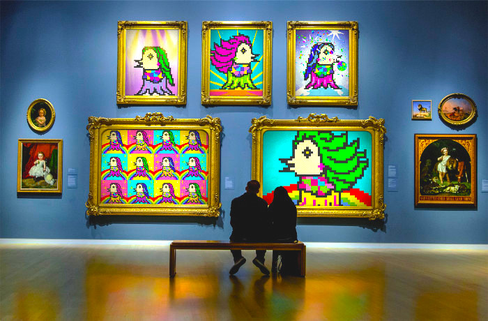 BIE-girl showed up at the gallery 🖼🌈 NFTart in preparation🧟♀️🖼 #NFT