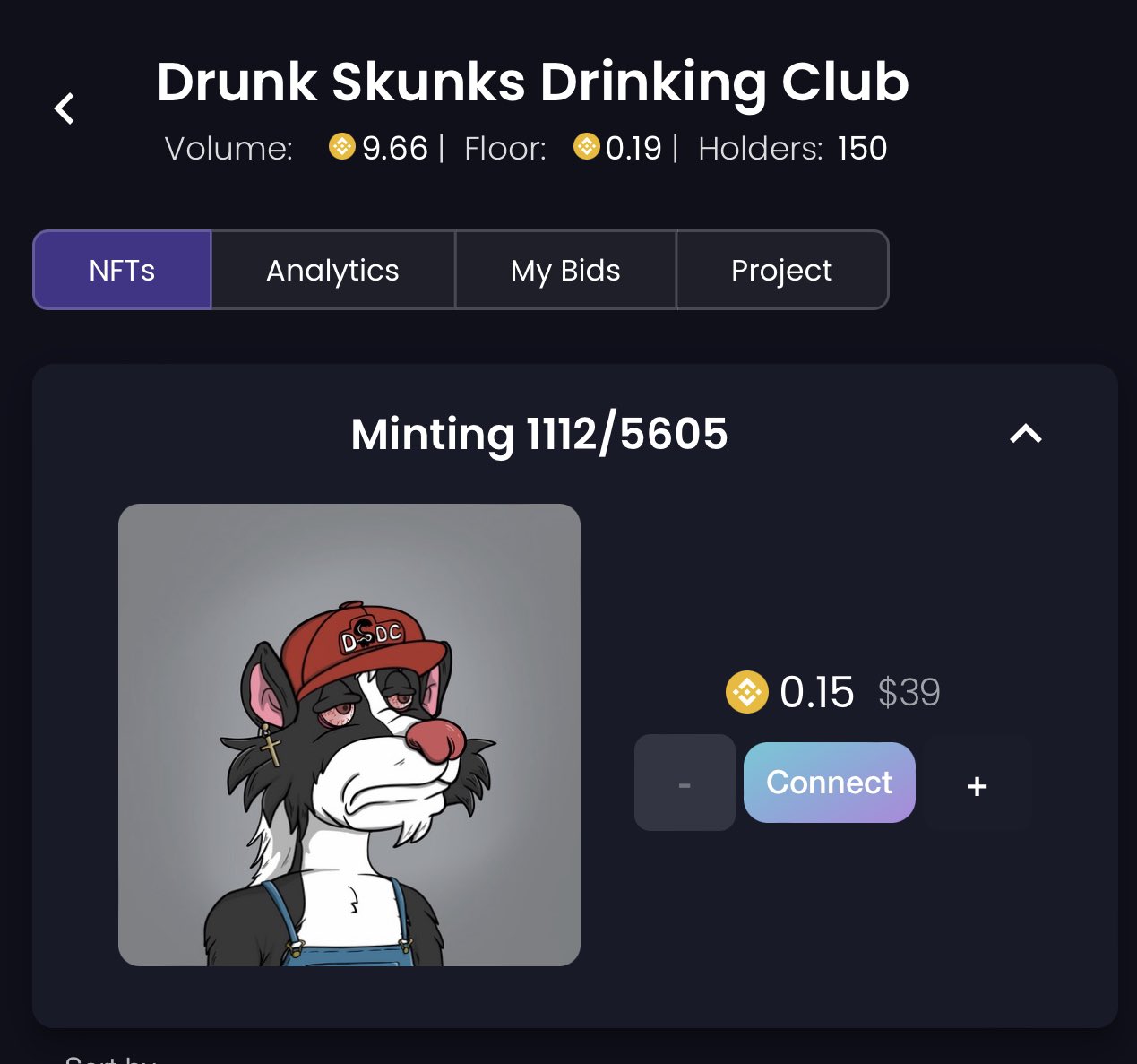 150 Holders 🦨 1112 Minted ✅ Winning Pot over 20 BNB🔥