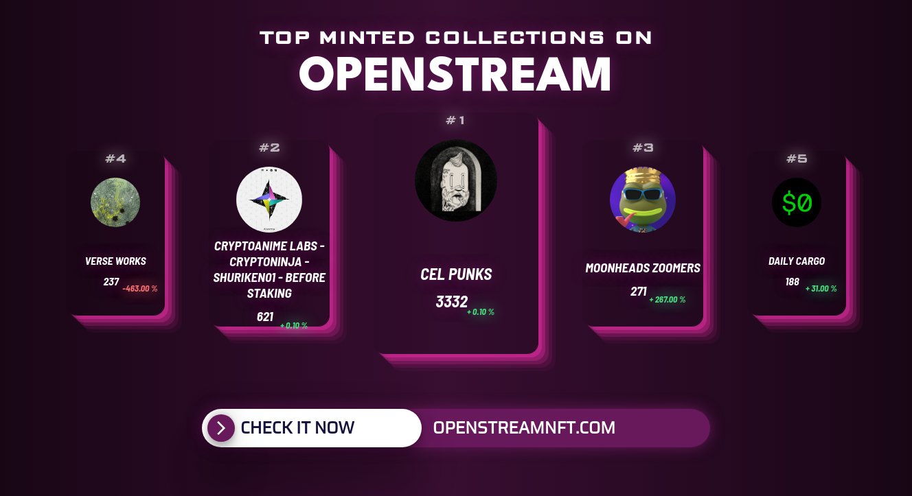 Top Minted collections in the last hour by @OpenStreamNFT