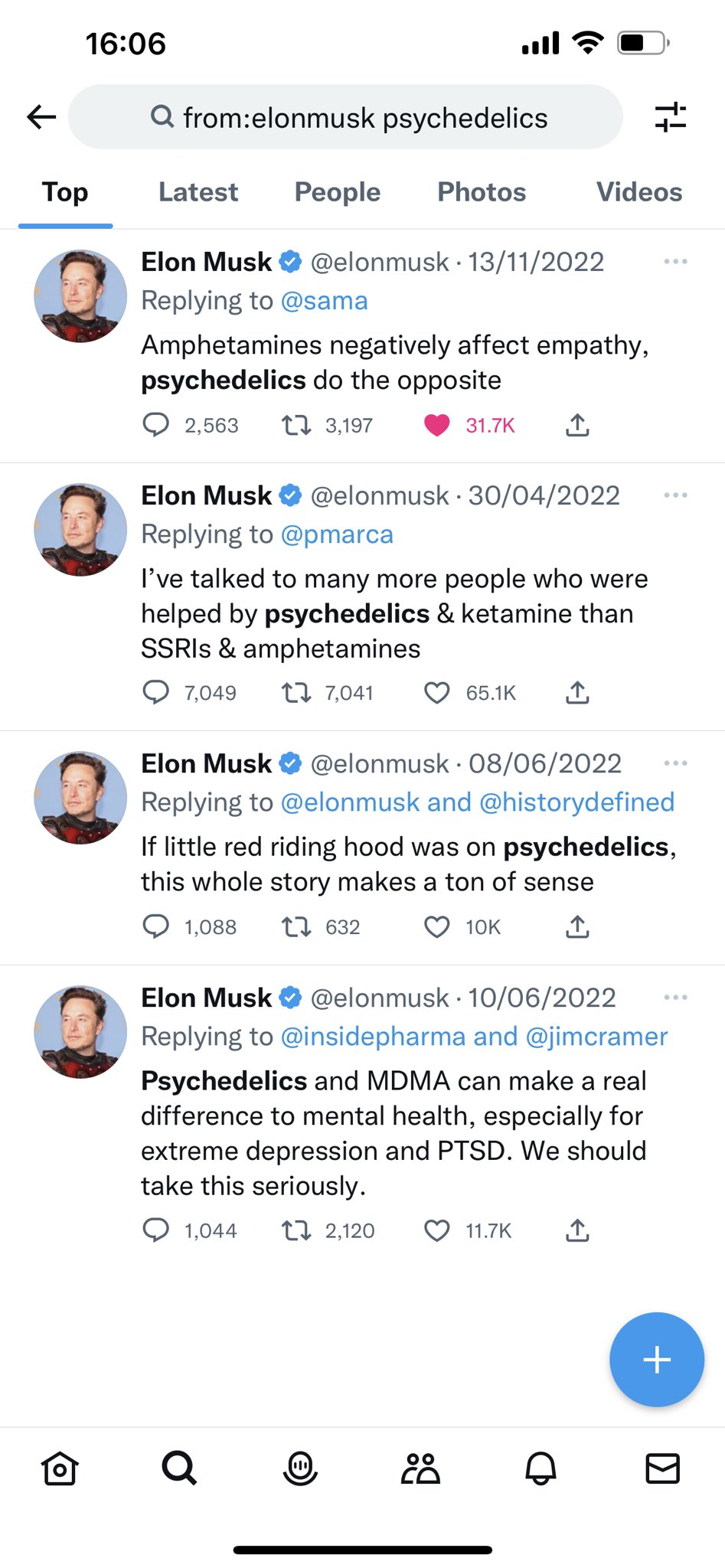 The amount of times Elon tweeted about psychedelics