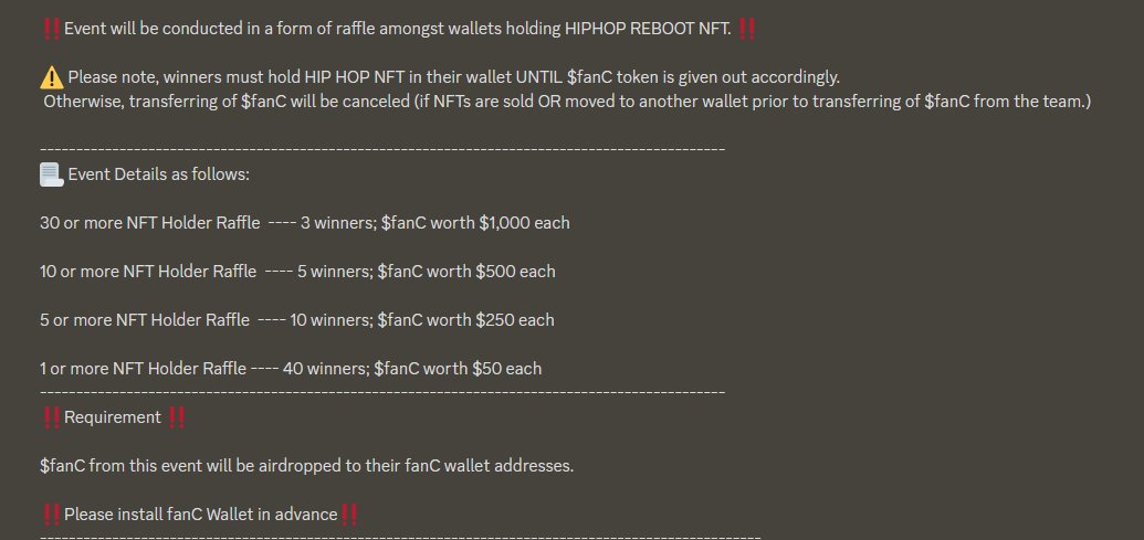The fanC token $10,000 airdrop event for holders has