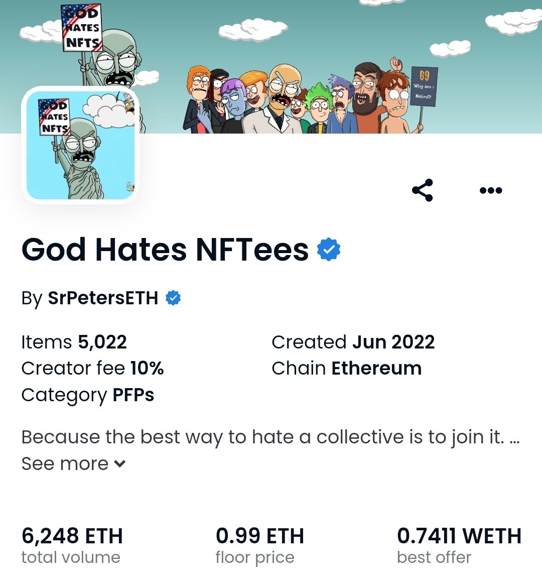 👀...Only 3 tokens left to @SrPetersETH #GodHatesNFTees