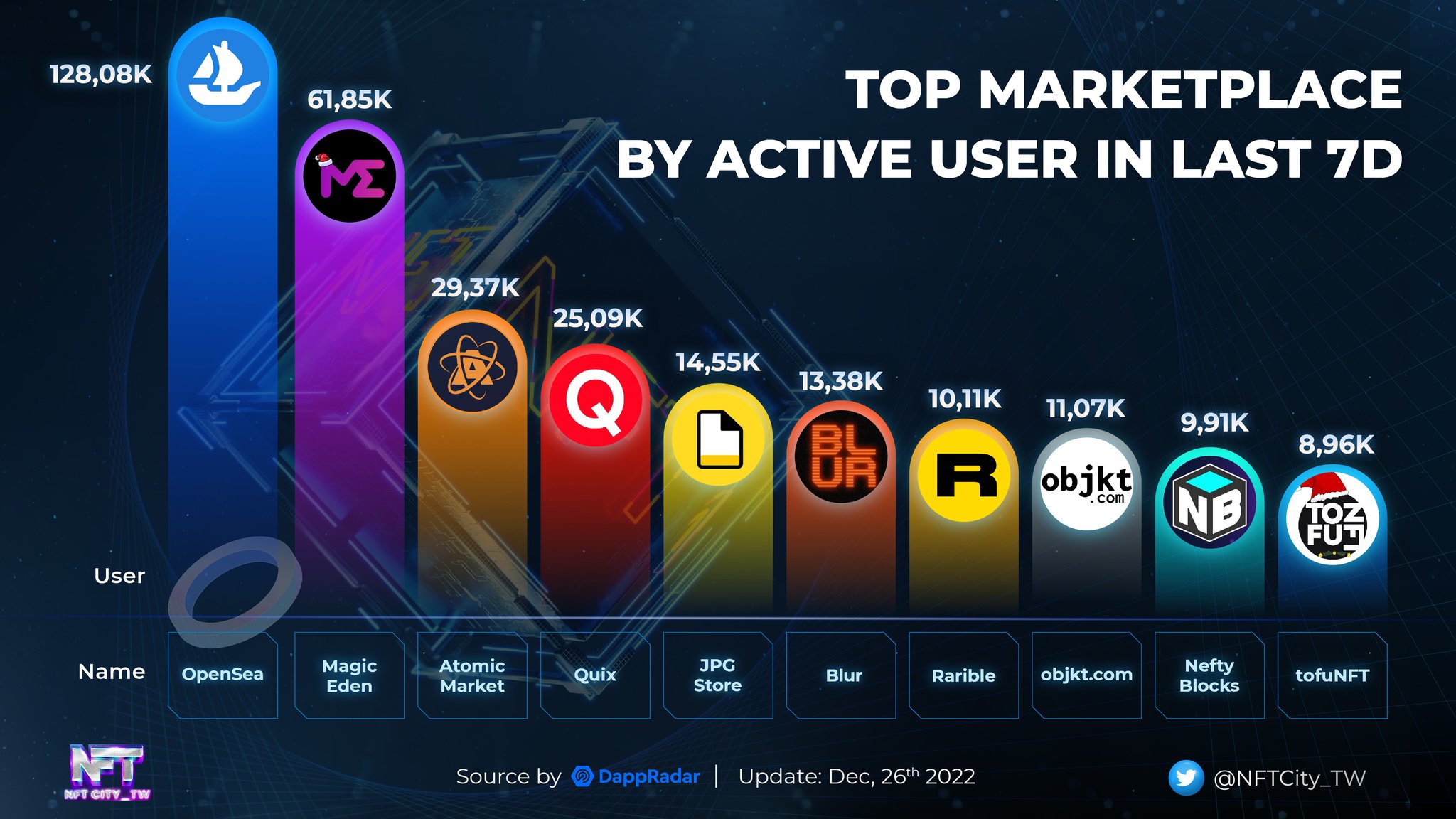 TOP MARKETPLACE BY ACTIVE USER IN LAST 7D @opensea