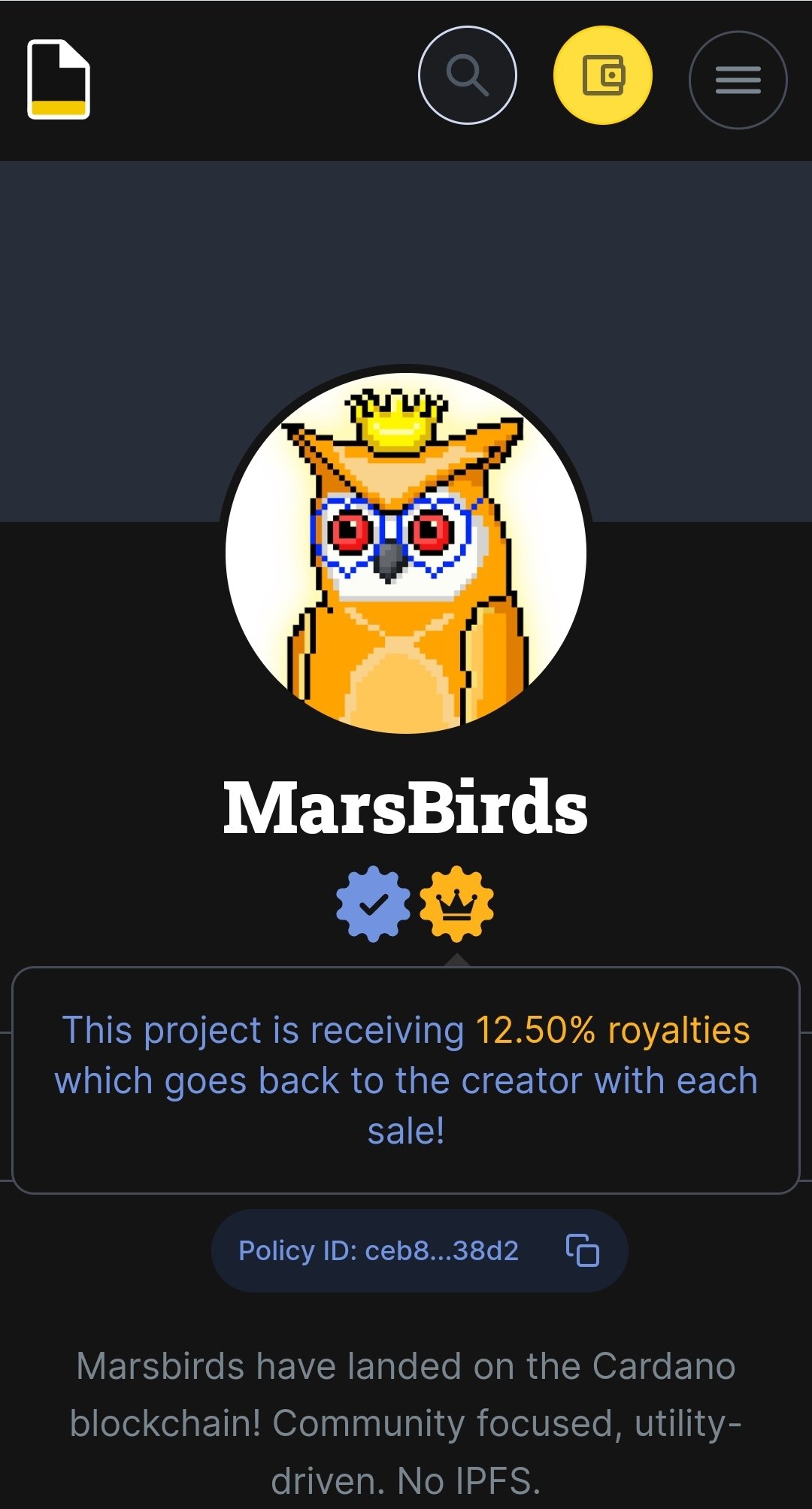 Its official @jpgstoreNFT changed @mars_birds royalties