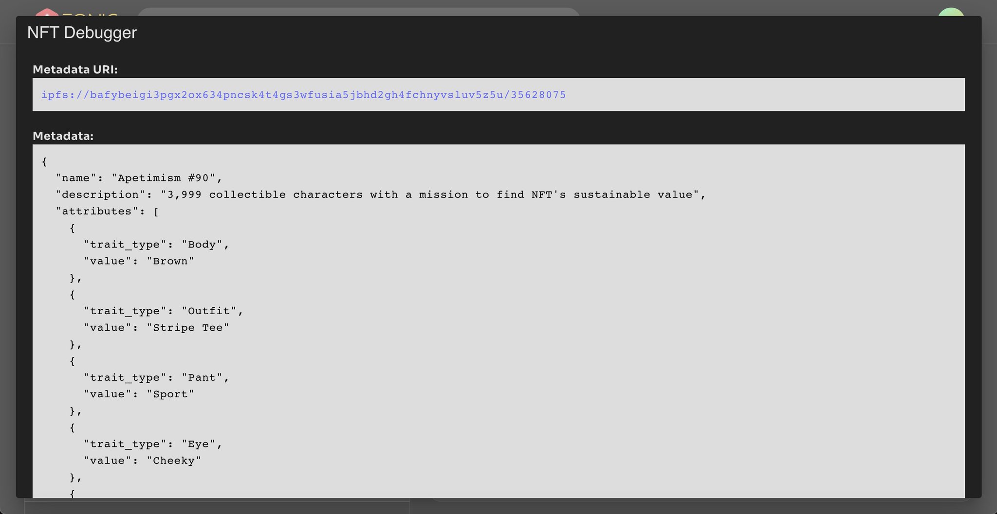 Some tips on #Zonic: You can debug the NFT's metadata
