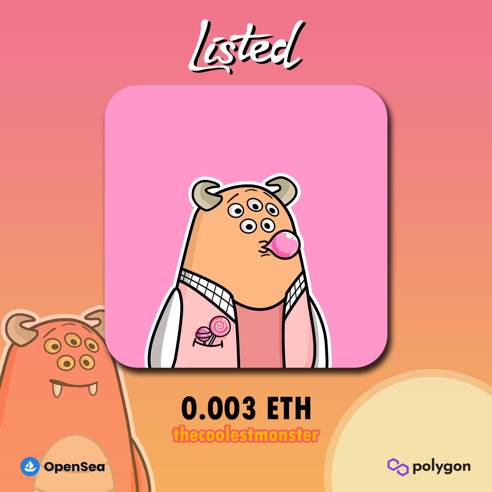 Listed! Available on @opensea Monster #134 Price 0