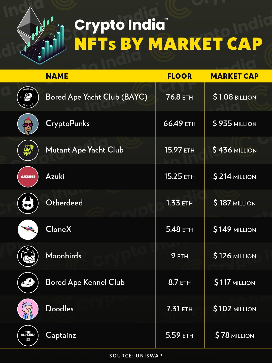 NFT Collections (ETH) by Market Cap https://t.co/1