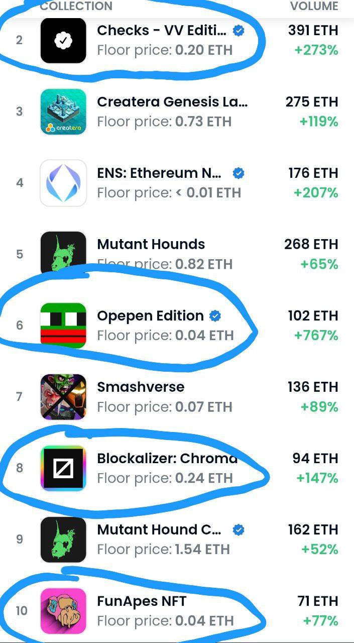 4/10 of the top trending projects on OpenSea were called