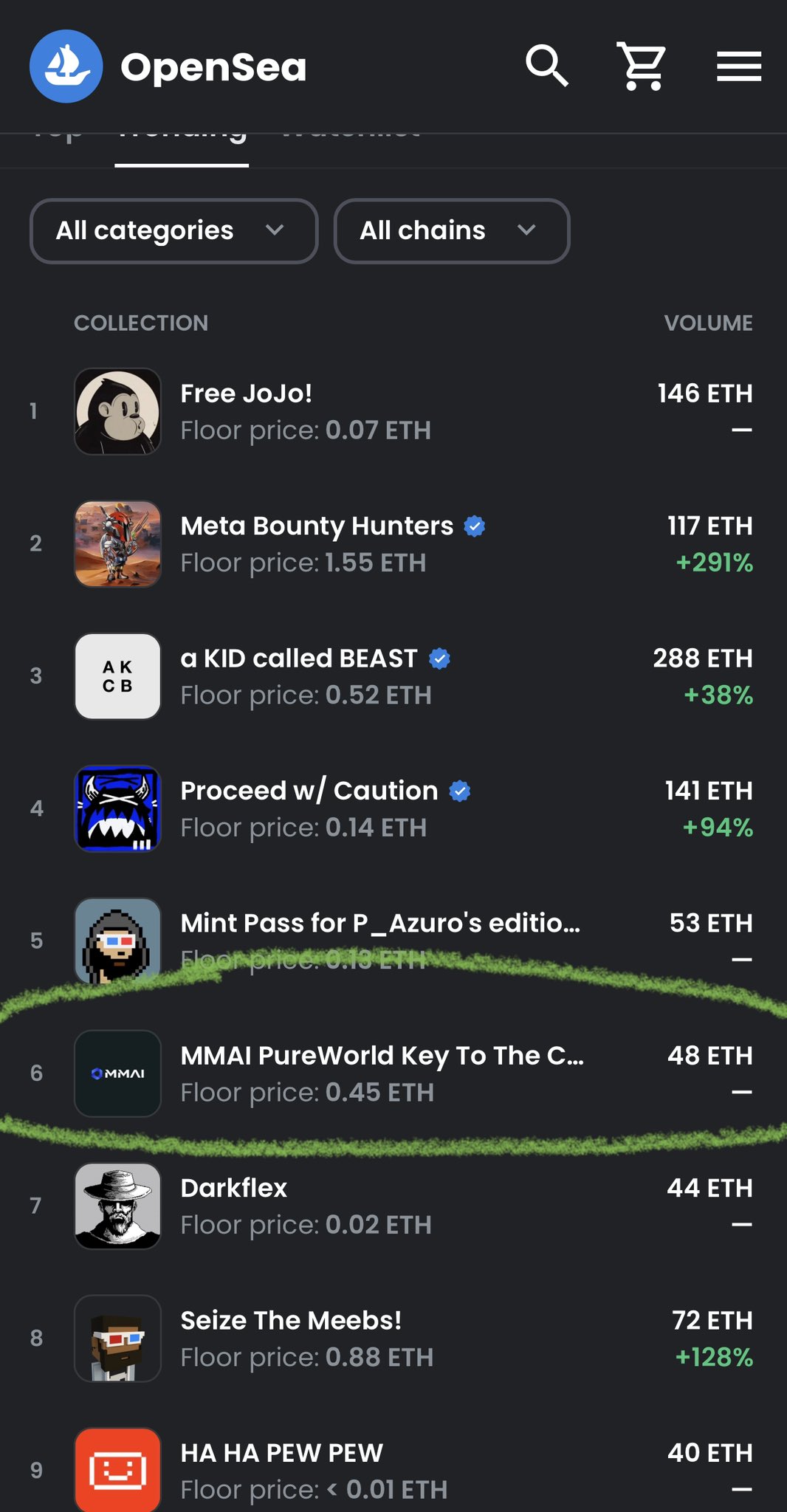 #MMAI PureWorld is TRENDING #6 on @opensea! @metamonkey_ai