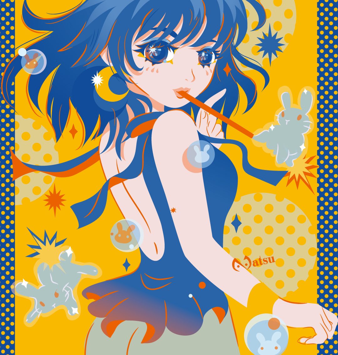 [girl with water rabit] 🐰🎈🌙 #女の子のイラスト #adobeillustrator