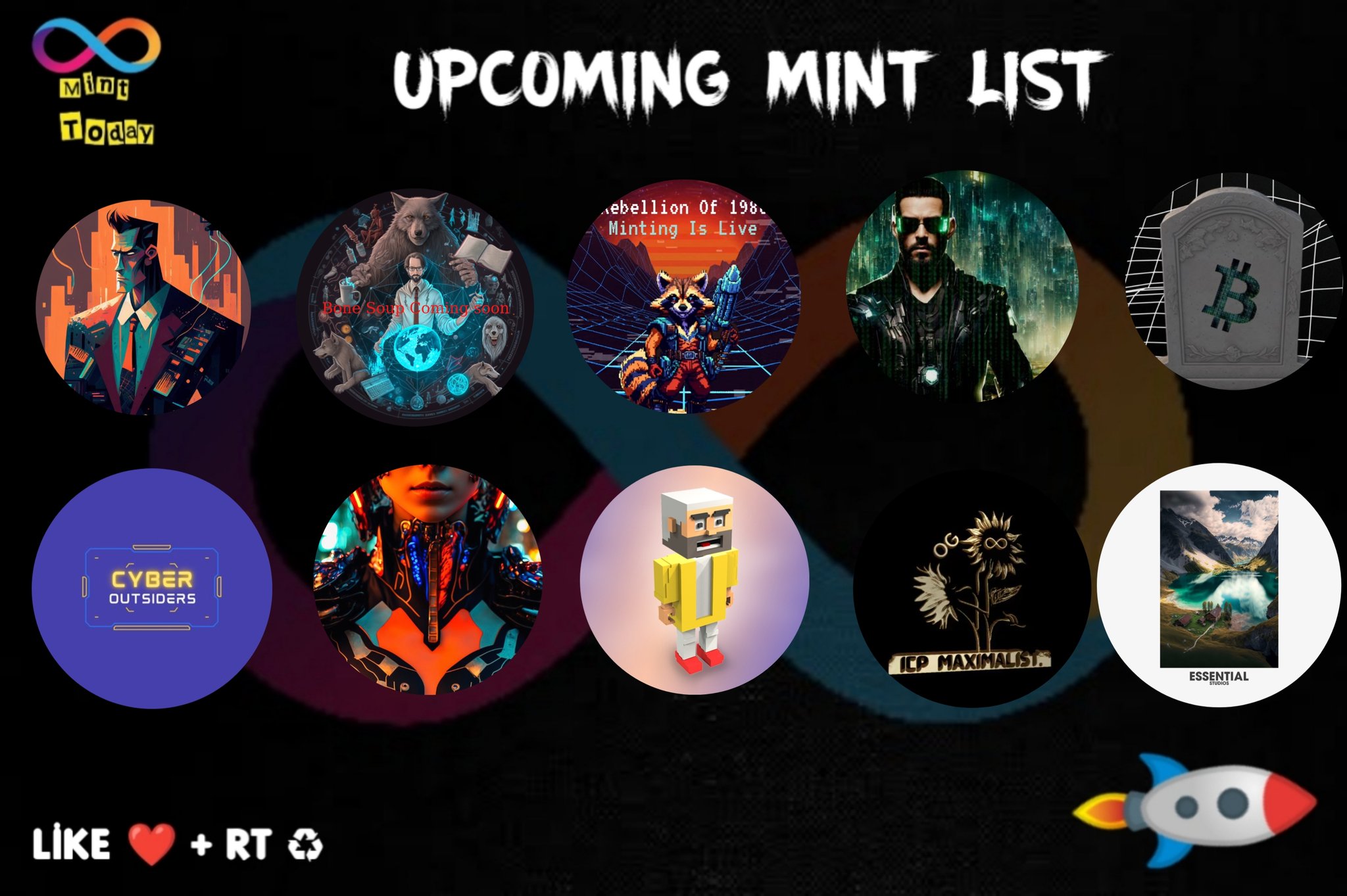 Upcoming Mint List $ICP 🚀 🛸30/01 🚀 @BoogleAcademy @IcProvenance @quarrelofworld @xSkApOnEx @btcvase @metators @ApesDfinity 🛸31/01