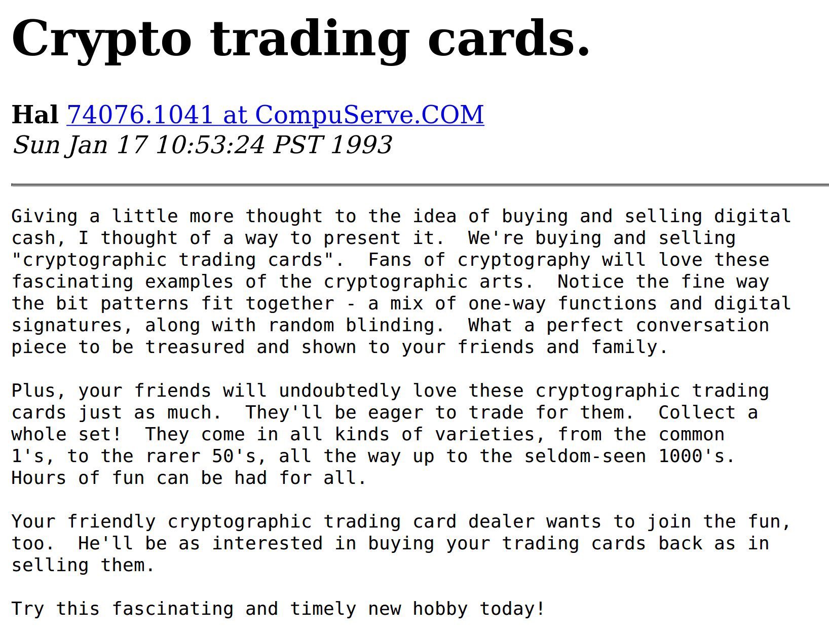 Something tells me Hal Finney would have appreciated