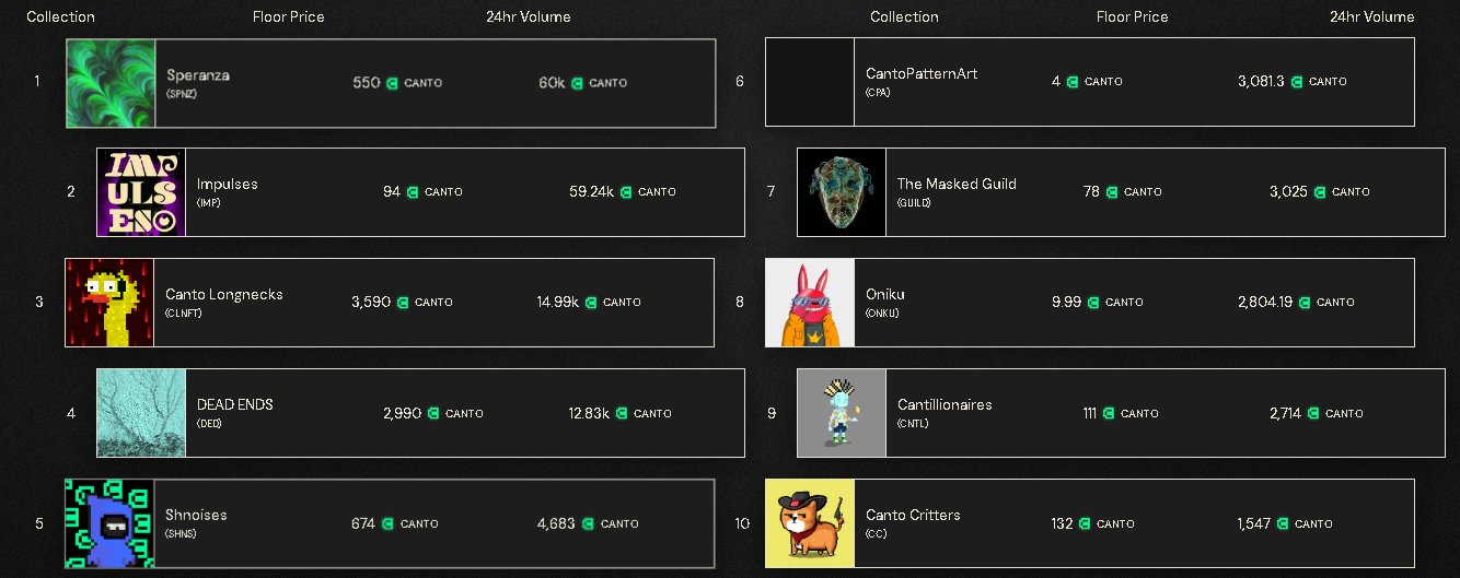 Canto NFT News Your daily top 10 NFTs in @AltoMarket