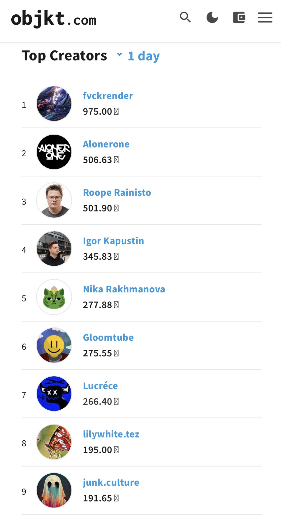 Woah!!! I’m in the Top Creators of the day on Objkt