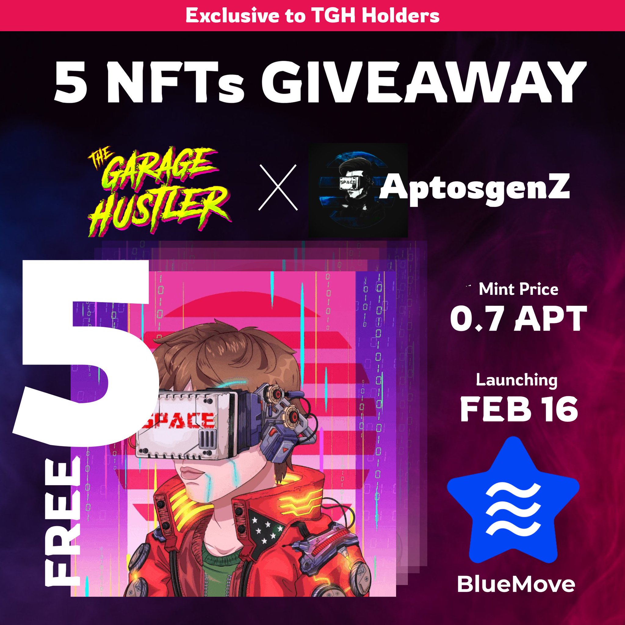 Win 5 NFTs of @AptosGenZ for FREE!🥳 (Mint 24hrs @BlueMove_OA) Dear
